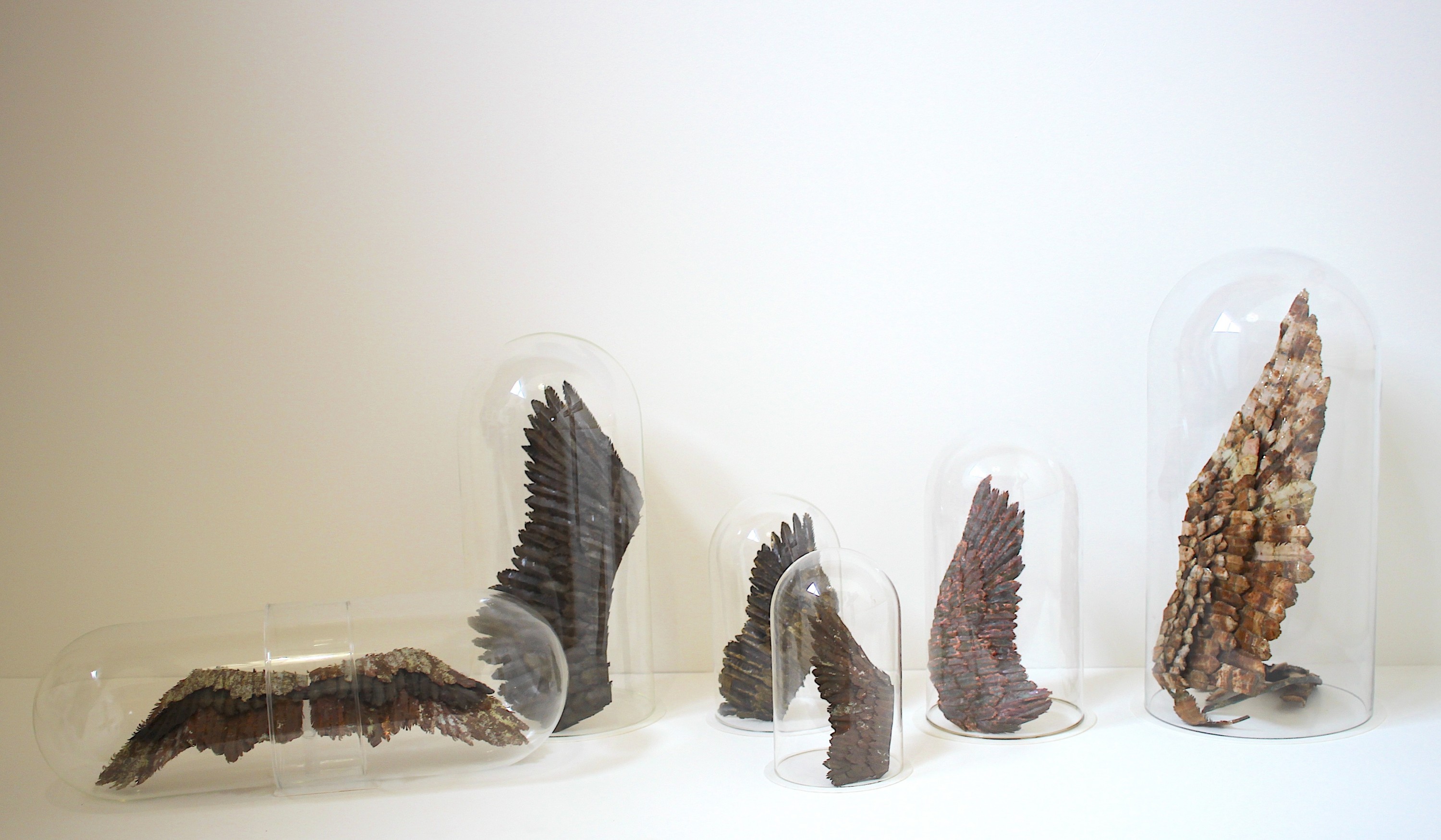 vintage brass, copper, roofing iron, tin, glass domes, felt, hand cut perspex